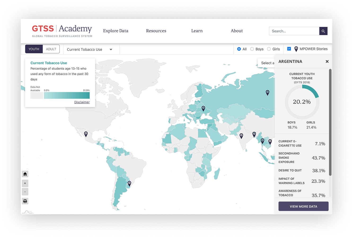 Toolbox created an interactive map for users to explore data. Users can compare countries and view key statistics through dynamic tools. Dedicated country pages offer comprehensive data sets and insights, bridging discovery and analysis.